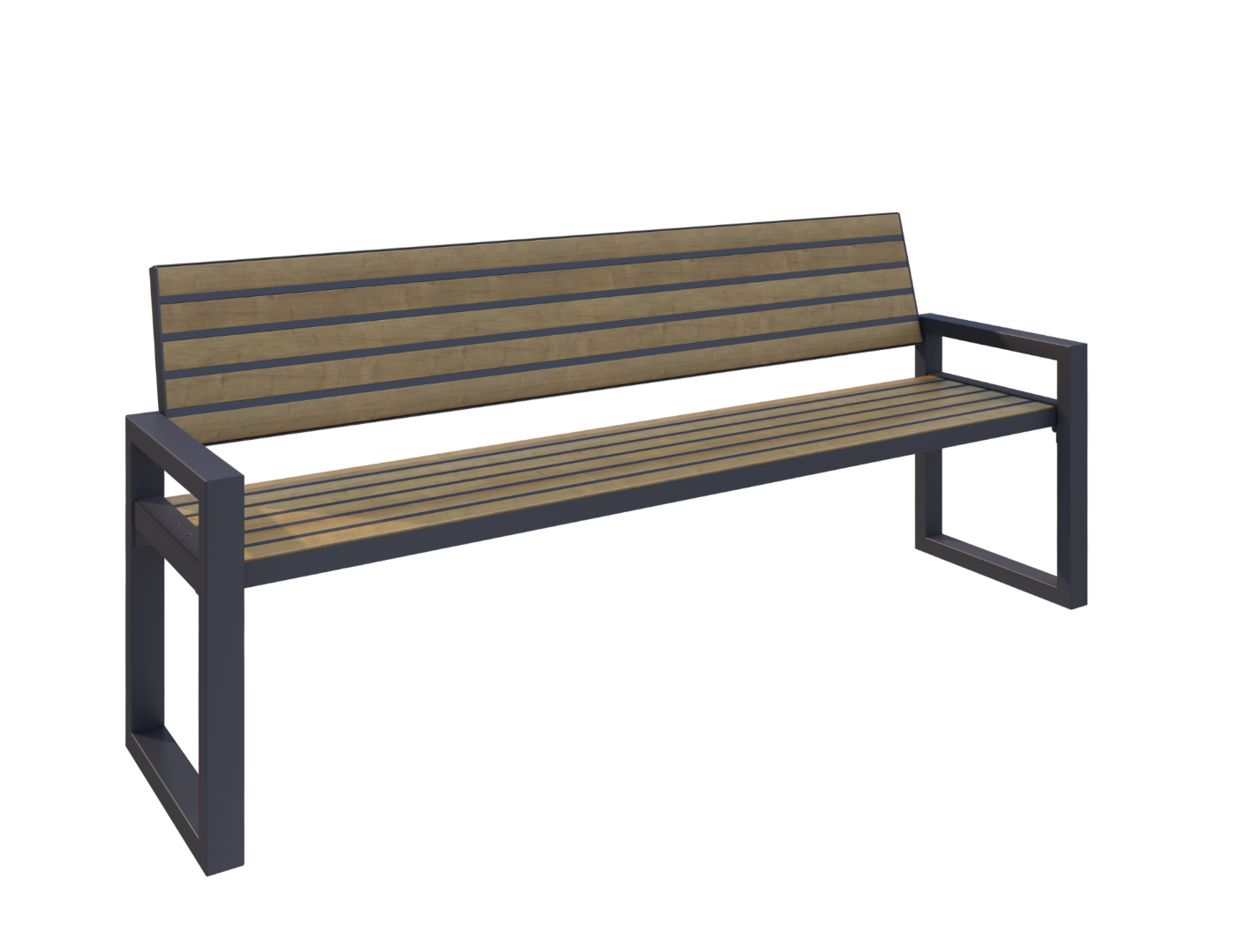 Каркас скамейки выполнен из стали. Защита от коррозии стальных элементов конструкции – горячее цинкование или полимерный цинкосодержащий грунт. Эстетический вид конструкциям придают путем нанесения порошковой краски.