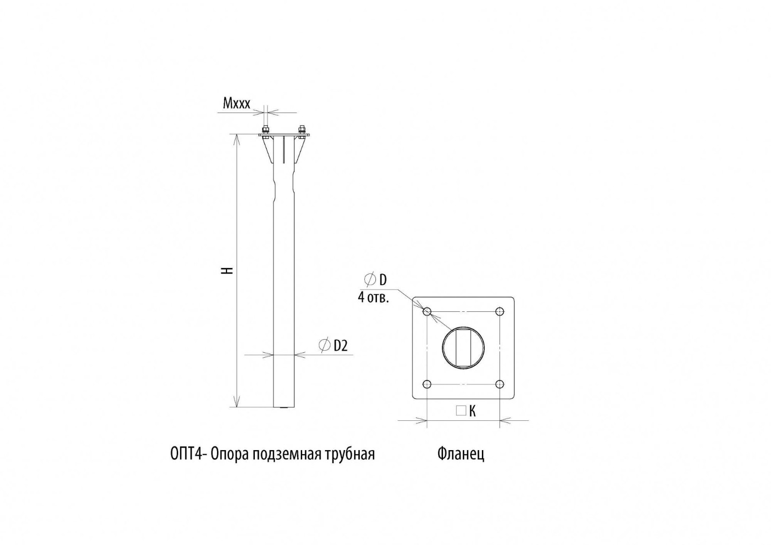 | ОПТ4-К350-1 | Закладная опора ОПТ4-К350-М24 | 2,5(219) | 219 | 350 | 26 | 4 | КК1-ОПТ4-М24 | Легер (7м и 8м) |