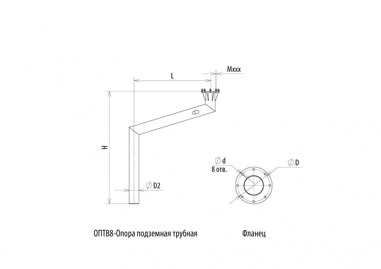 | Обозначение | Наименование | Высота H, м | Вылет L, м | Диаметр трубы D2, мм | Размер опорного фланца D, мм | Размер крепежного отверстия Ød, мм | Количество отверстий, шт | Крепежный комплект | Для каких опор |